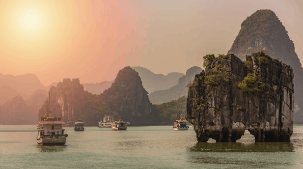 Nella località di Halong Bay ci si può immergere in un ambiente da favola caratterizzato da più di 3000 isolette e faraglioni che disegnano uno dei panorami più belli al mondo che hanno portato questa zona a diventare Patrimonio dell’Unesco e a essere considerata una delle sette meraviglie del mondo naturale. La vegetazione è molto rigogliosa e lussureggiante grazie al clima umido e piovoso e ospita una fauna straordinaria che si fregia della presenza anche dell’aquila reale. Ha Long in vietnamita vuol dire “posto in cui il drago scende in mare” proprio perché secondo una delle leggende locali il paesaggio è stato modellato dalla coda di un gigantesco drago che secondo alcuni ancora oggi abita i fondali.