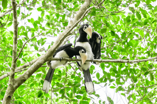 Nel parco sono presenti grandi colonie di buceri ed è quindi facile osservarli anche nelle varietà più pittoresche come il bucero dai due corni, una specie davvero spettacolare per i colori sgargianti e il caratteristico becco, o il bucero bianconero.