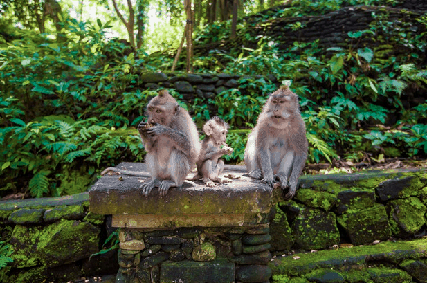 Nel centro di Ubud è possibile fare delle belle passeggiate ad esempio nella famosa foresta delle scimmie, un zona nella città dove è possibile trovare una fitta vegetazione popolata da molti esemplari di scimmie e macachi e dove sono presenti alcuni tempi sacri molto importanti, in particolare il Pura Dalem Agung dedicato ai defunti.